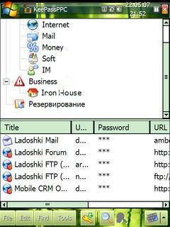 KeePassPPC v0.4.4 (WM5.0/6.0) Приложение для хранения важных данных KeePass PPC — это порт настольного приложения KeePass на Pocket PC. С его помощью вы сможете защитить важные данные, пароли и многое другое на вашем КПК от посторонних глаз. совместима с Pocket PC: ARM процессор и выше Windows Mobile 5.0 и выше Забираем здесь