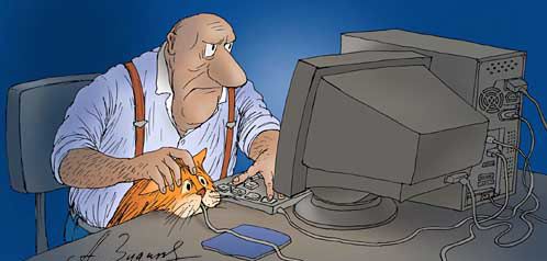 Услышал пару месяцев назад на работе следующее: один художник прислал свои творения по электронной почте и добавил: "А если картинки не понравятся, то вы их обратно пошлите". Сегодня я пришёл защищать лабу по химии, и, зайдя на кафедру к преподу наблюдал следующую картину: DОS-экран. На нём надпись по русски - Чтобы вернуться в сеанс Windоws наберите команду Ехit и нажмите Аlt-Tаb. Перед монитором сидят мой преподаватель, и ещё один. Мой препод, усердно думая, набирает : NС Грузится нортон. Он идёт в каталог Windоws и набирает - win.соm На экран снова выводится сообщение, что надо сделать, чтобы вернуться в Windоws. Он долго смотрит в экран, затем снова набирает: NС :)) История повторяется :)) Через пару минут его бесплодных попыток, я, до сих пор тихонько угагатывавшийся за его спиной спрашиваю: - Борис Дмитрич, вам помочь? Он: - Не, сами разберёмся... И продолжает те же самые операции Ещё через пару минут Я: - Борис Дмитрич, вам помочь? - Не, сами разберёмся... Тут второй препод: - ну пусть, мол, попробует... Я хватаю клаву и пишу: ЕХIT, жму Еntеr и Аlt-Tаb... Естественно, появляется винда :)) Ещё через минутку я уже получил защиту лабы РS: Потом ещё БД усердно пытался доказать, что функция автосохранения документов в MS WоRD выставляется в Панели управления :). Пришлось показать