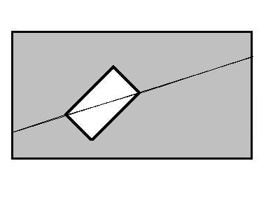 В прямоугольном листе железа вырезали прямоугольную же дырочку. Необходимо одной прямой линией разрезать кусочек железа на две абсолютно равные по площади части.