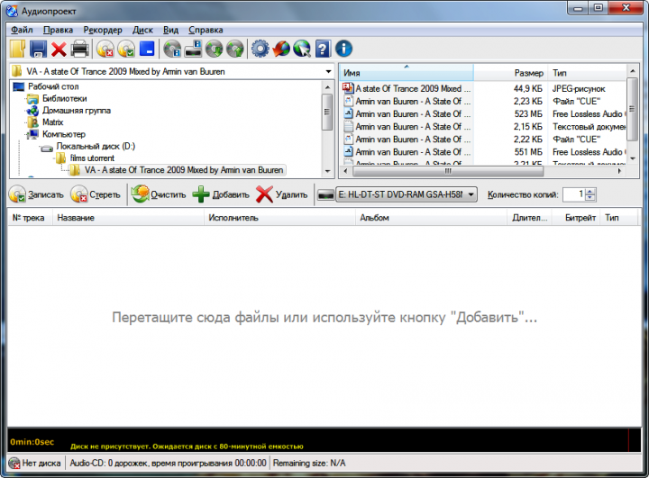 » создание аудио-дисков из mp3, wav, ogg, flac и wma файлов
